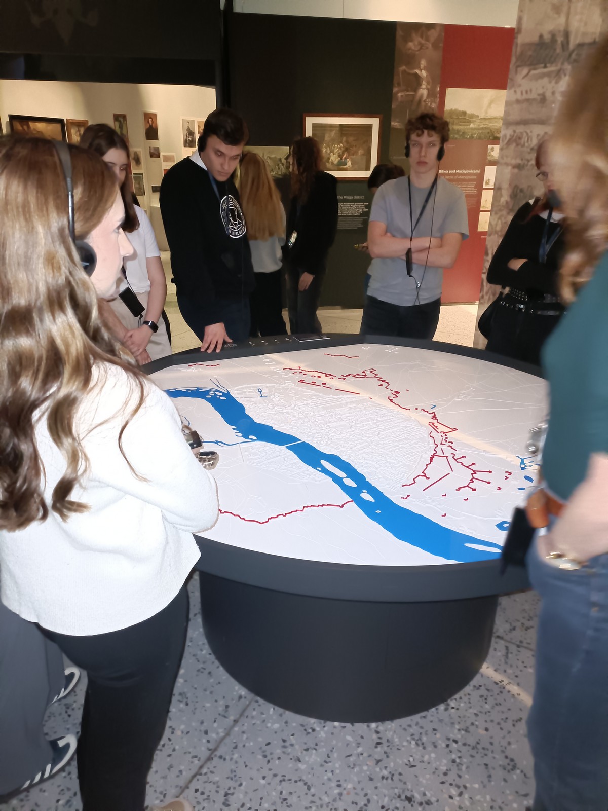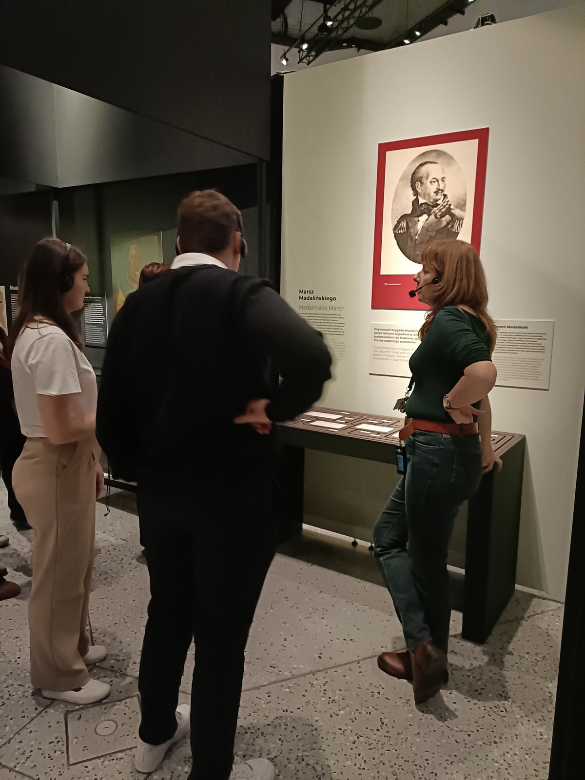 W Muzeum obejrzeliśmy wystawę „Rzeczpospolita powstańcza. Insurekcja kościuszkowska i jej tradycje.”, która tylko pozornie mogłaby przypominać klasyczną lekcję historii. Energiczne przewodniczki, przyjaznym, młodzieżowym językiem odkrywały przed nami postać Tadeusza Kościuszki, jakiego nie znaliśmy, a przeprowadzenie nas przez dramatyczne wydarzenia Sejmu Wielkiego, kolejnych rozbiorów i powstania kosynierów sprawiło, że czuliśmy zarówno dumę z wielu osiągnięć Polaków tego okresu, jak i przemożny smutek, że tak potoczyły się losy naszego narodu.