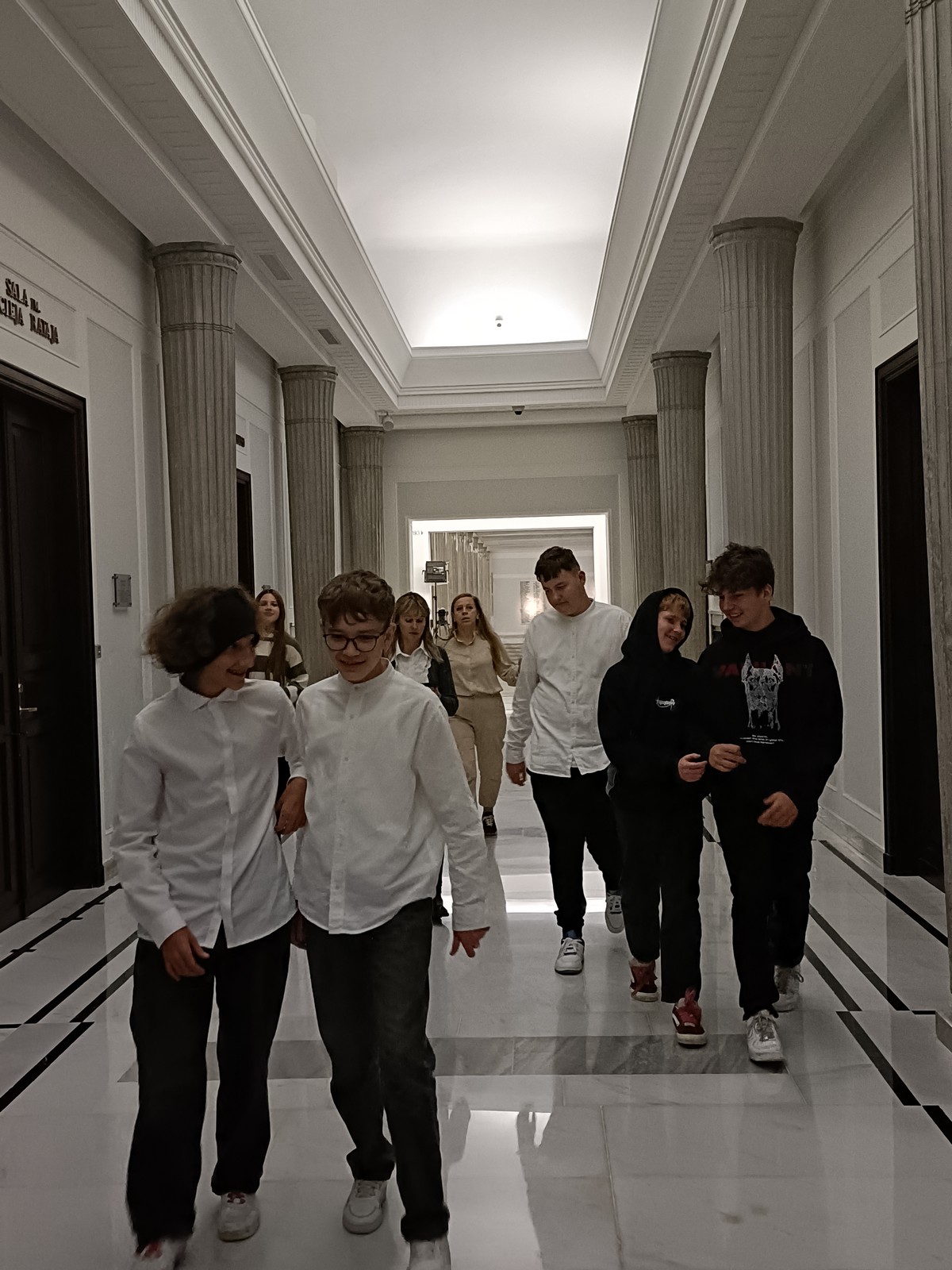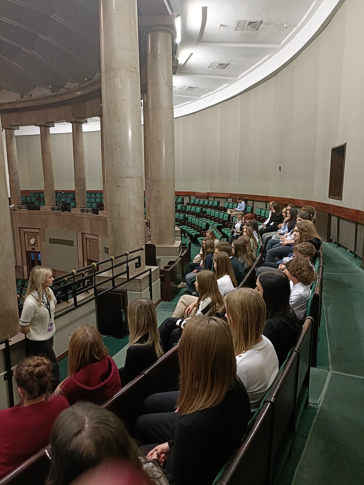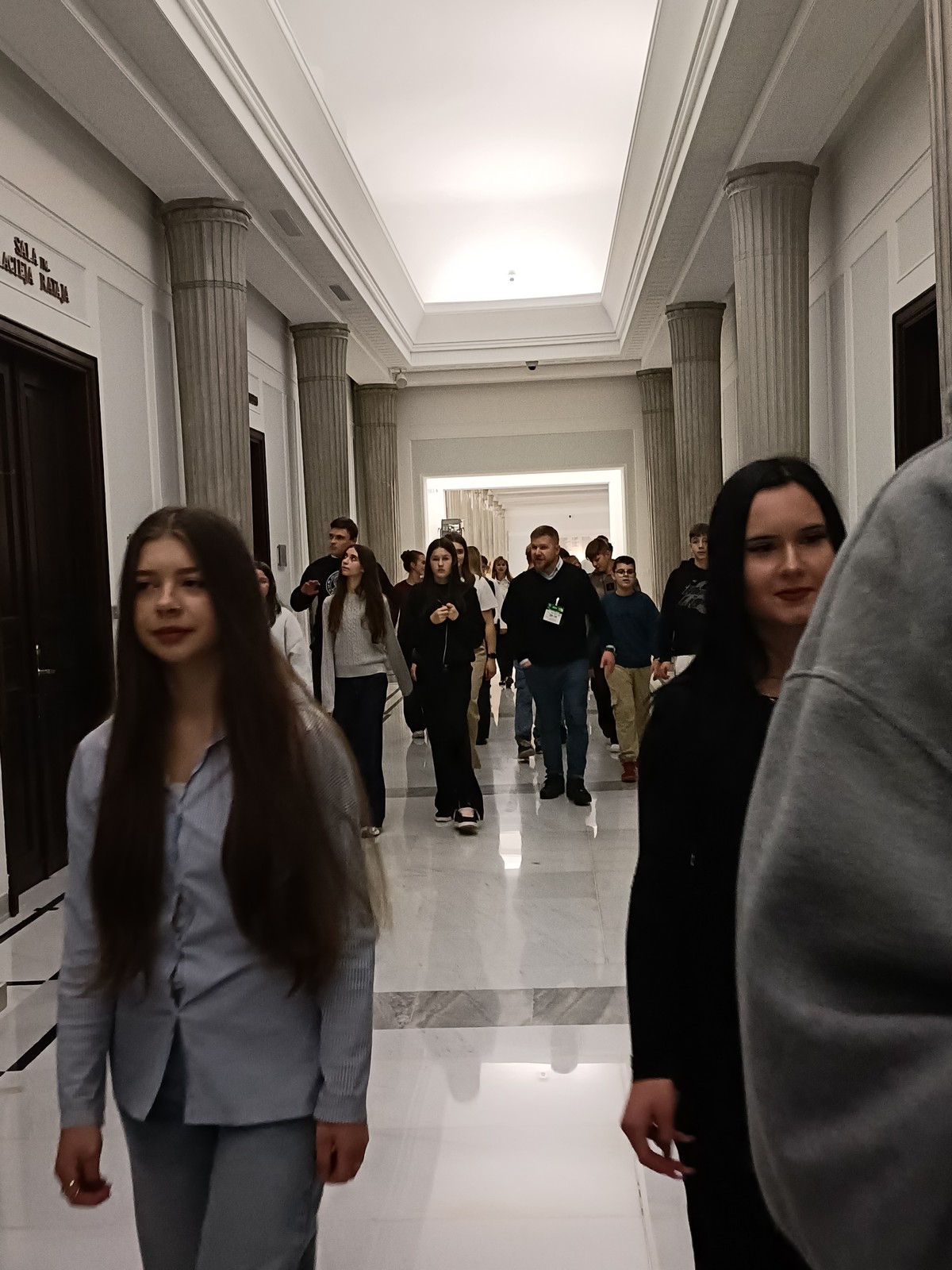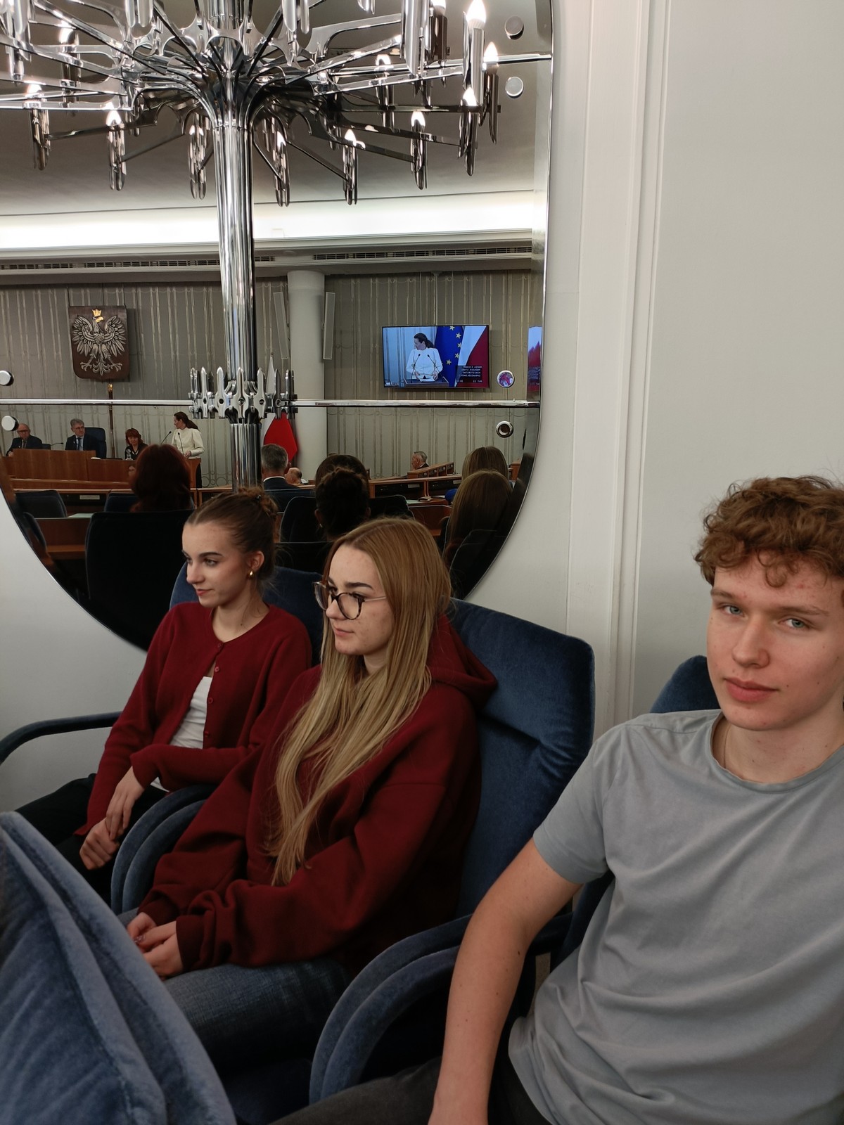 Druga część wycieczki obejmowała przestrzeń Parlamentu i tu już same liczne i skrupulatne kontrole wywołały spore emocje. Domowy obiad w starym Domu Poselskim w towarzystwie pana senatora był dla młodych ludzi okazją do „zwykłej” rozmowy ze znanym i szanowanym parlamentarzystą. I w końcu spacer po parlamencie, w którym nie tylko weszliśmy do sali posiedzeń Sejmu, którą znaliśmy z telewizyjnych wiadomości, ale także w sali senackiej wzięliśmy udział we fragmencie posiedzenia, na którym nie tylko wysłuchaliśmy części dyskusji nad ustawą o umowie ekstradycyjnej z Peru, ale zostaliśmy przez wicemarszałka Senatu powitani jako wolontariusze „Pól Nadziei”. To był duży zaszczyt, a wizyta w Parlamencie zostawiła w nas niezapomniane wrażenia.