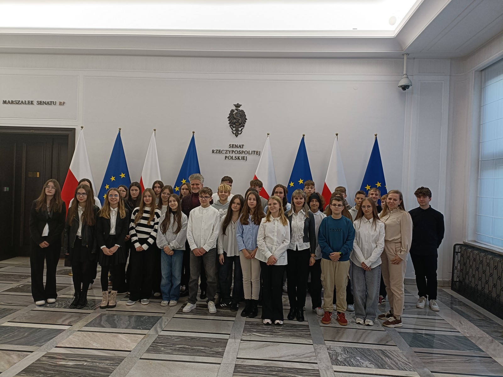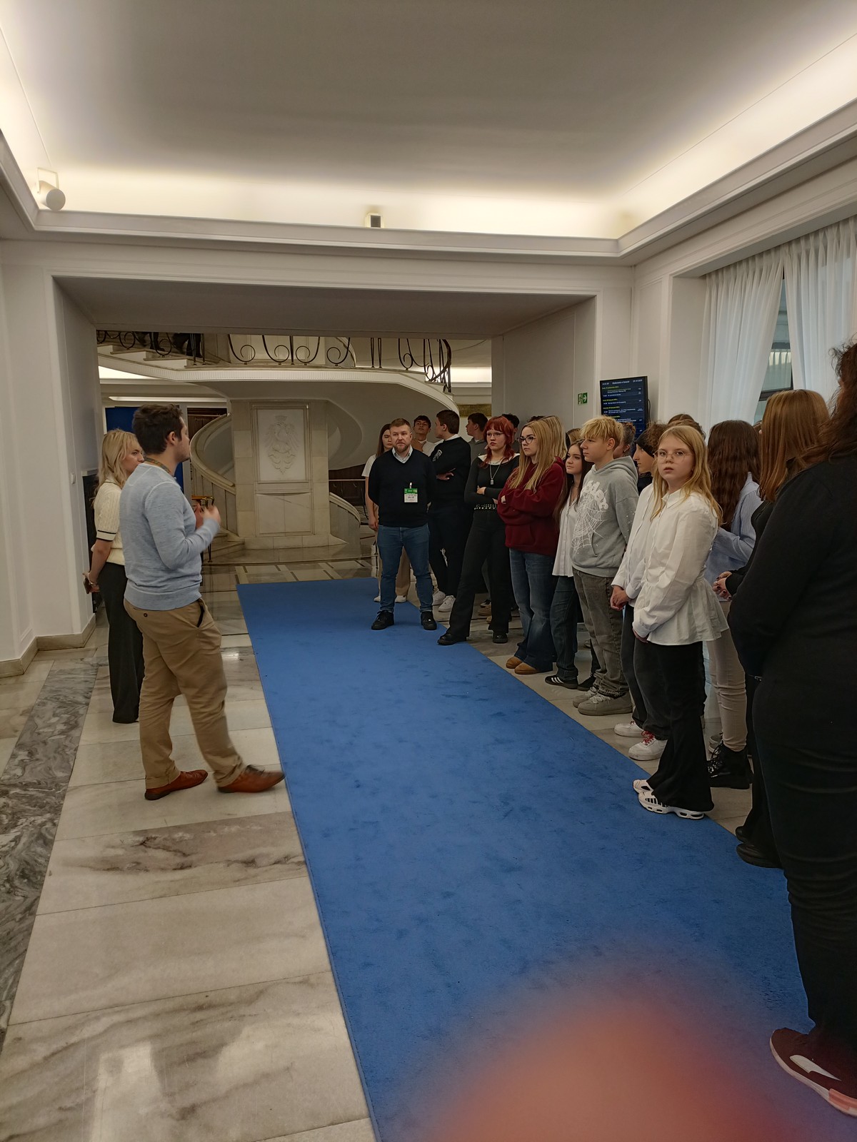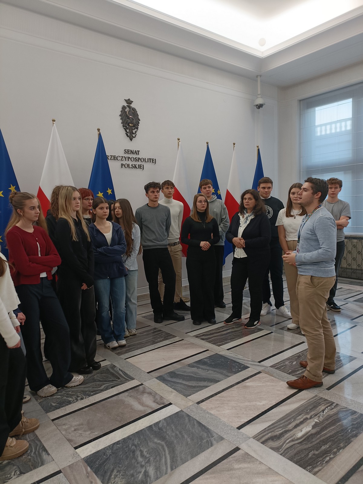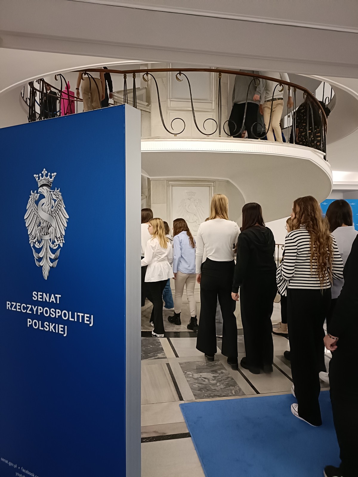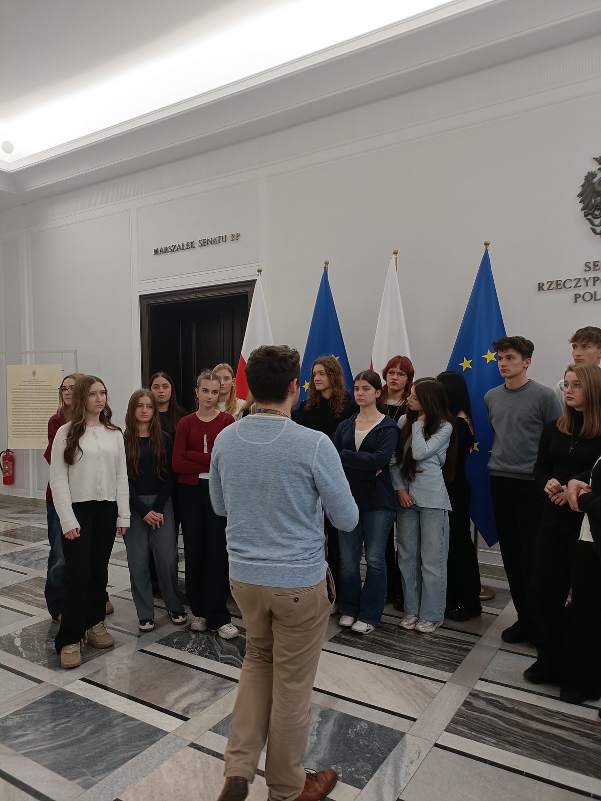 Druga część wycieczki obejmowała przestrzeń Parlamentu i tu już same liczne i skrupulatne kontrole wywołały spore emocje. Domowy obiad w starym Domu Poselskim w towarzystwie pana senatora był dla młodych ludzi okazją do „zwykłej” rozmowy ze znanym i szanowanym parlamentarzystą. I w końcu spacer po parlamencie, w którym nie tylko weszliśmy do sali posiedzeń Sejmu, którą znaliśmy z telewizyjnych wiadomości, ale także w sali senackiej wzięliśmy udział we fragmencie posiedzenia, na którym nie tylko wysłuchaliśmy części dyskusji nad ustawą o umowie ekstradycyjnej z Peru, ale zostaliśmy przez wicemarszałka Senatu powitani jako wolontariusze „Pól Nadziei”. To był duży zaszczyt, a wizyta w Parlamencie zostawiła w nas niezapomniane wrażenia.