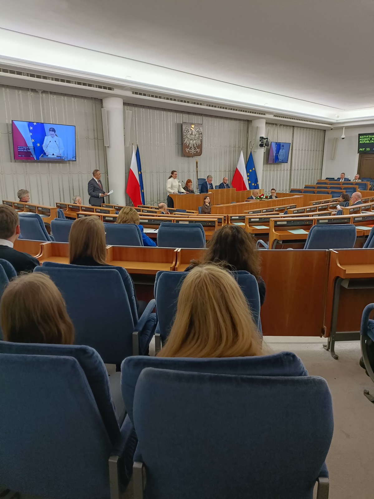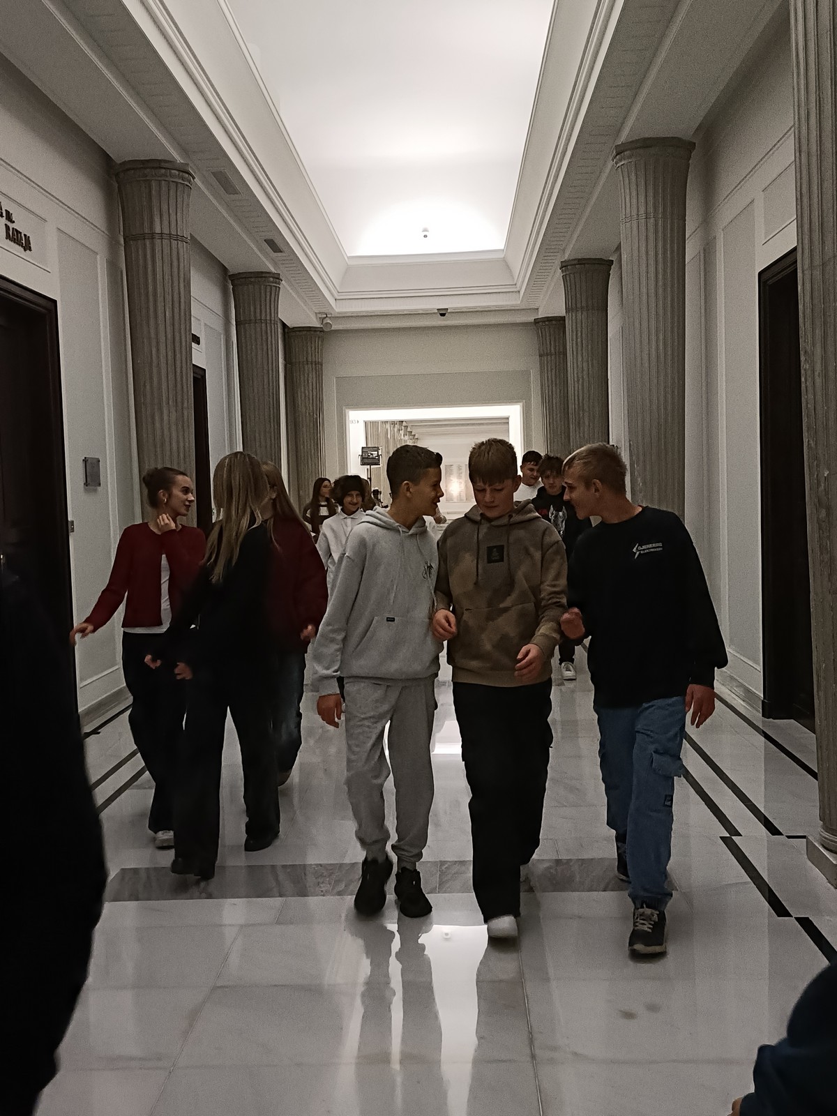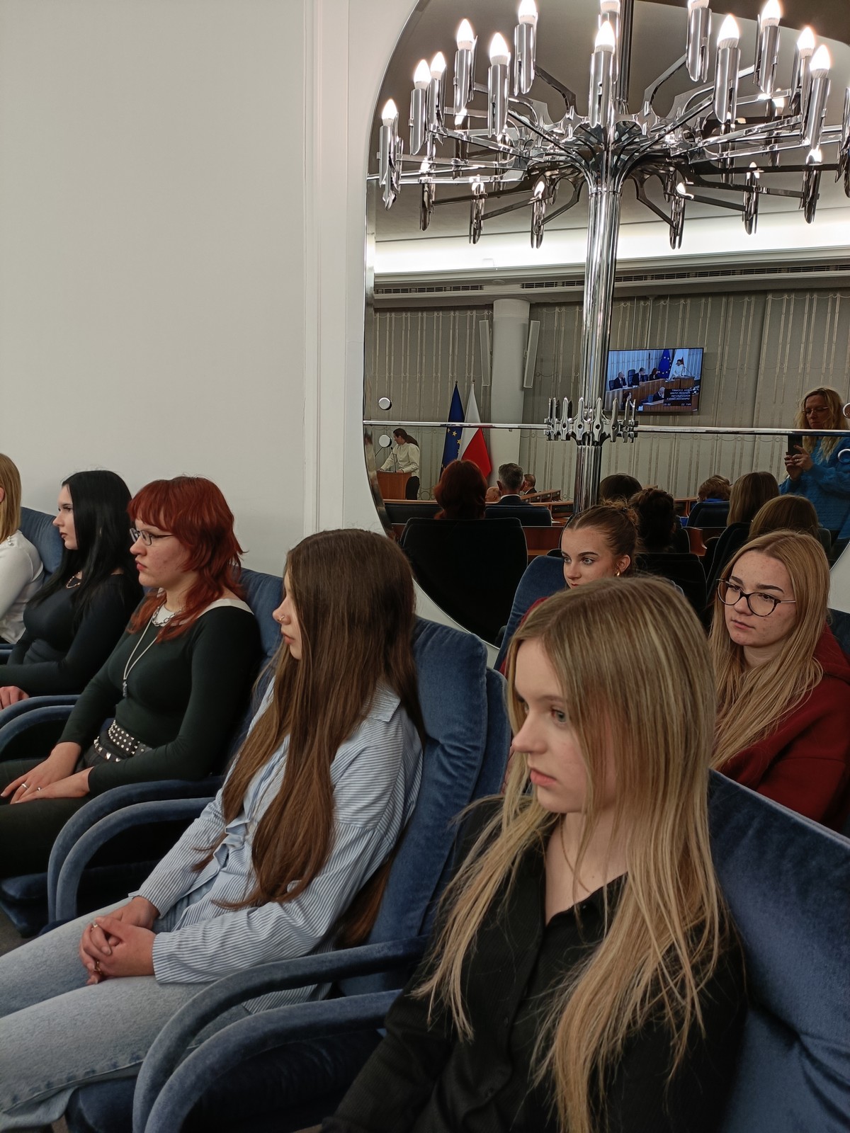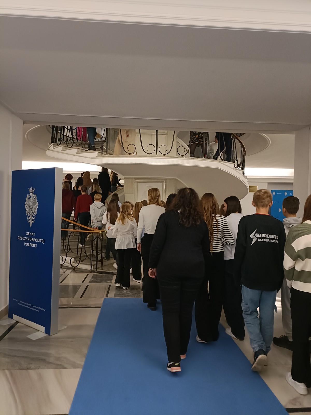 Druga część wycieczki obejmowała przestrzeń Parlamentu i tu już same liczne i skrupulatne kontrole wywołały spore emocje. Domowy obiad w starym Domu Poselskim w towarzystwie pana senatora był dla młodych ludzi okazją do „zwykłej” rozmowy ze znanym i szanowanym parlamentarzystą. I w końcu spacer po parlamencie, w którym nie tylko weszliśmy do sali posiedzeń Sejmu, którą znaliśmy z telewizyjnych wiadomości, ale także w sali senackiej wzięliśmy udział we fragmencie posiedzenia, na którym nie tylko wysłuchaliśmy części dyskusji nad ustawą o umowie ekstradycyjnej z Peru, ale zostaliśmy przez wicemarszałka Senatu powitani jako wolontariusze „Pól Nadziei”. To był duży zaszczyt, a wizyta w Parlamencie zostawiła w nas niezapomniane wrażenia.
