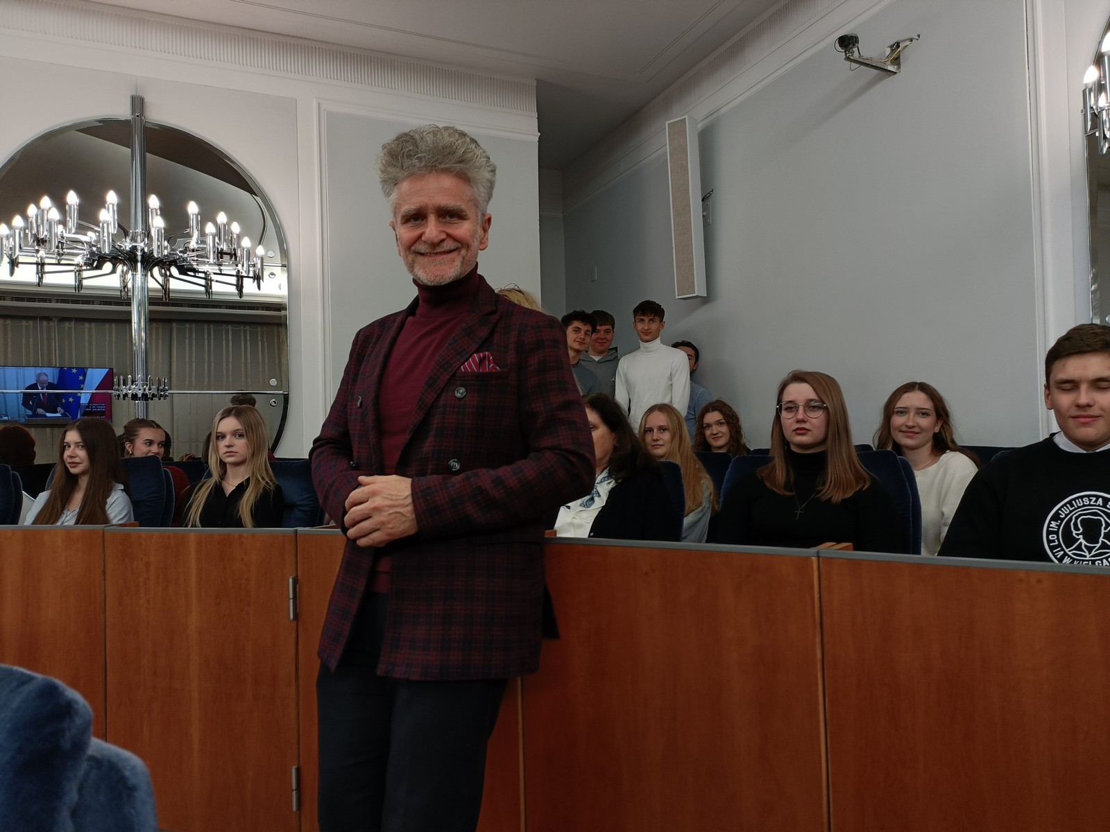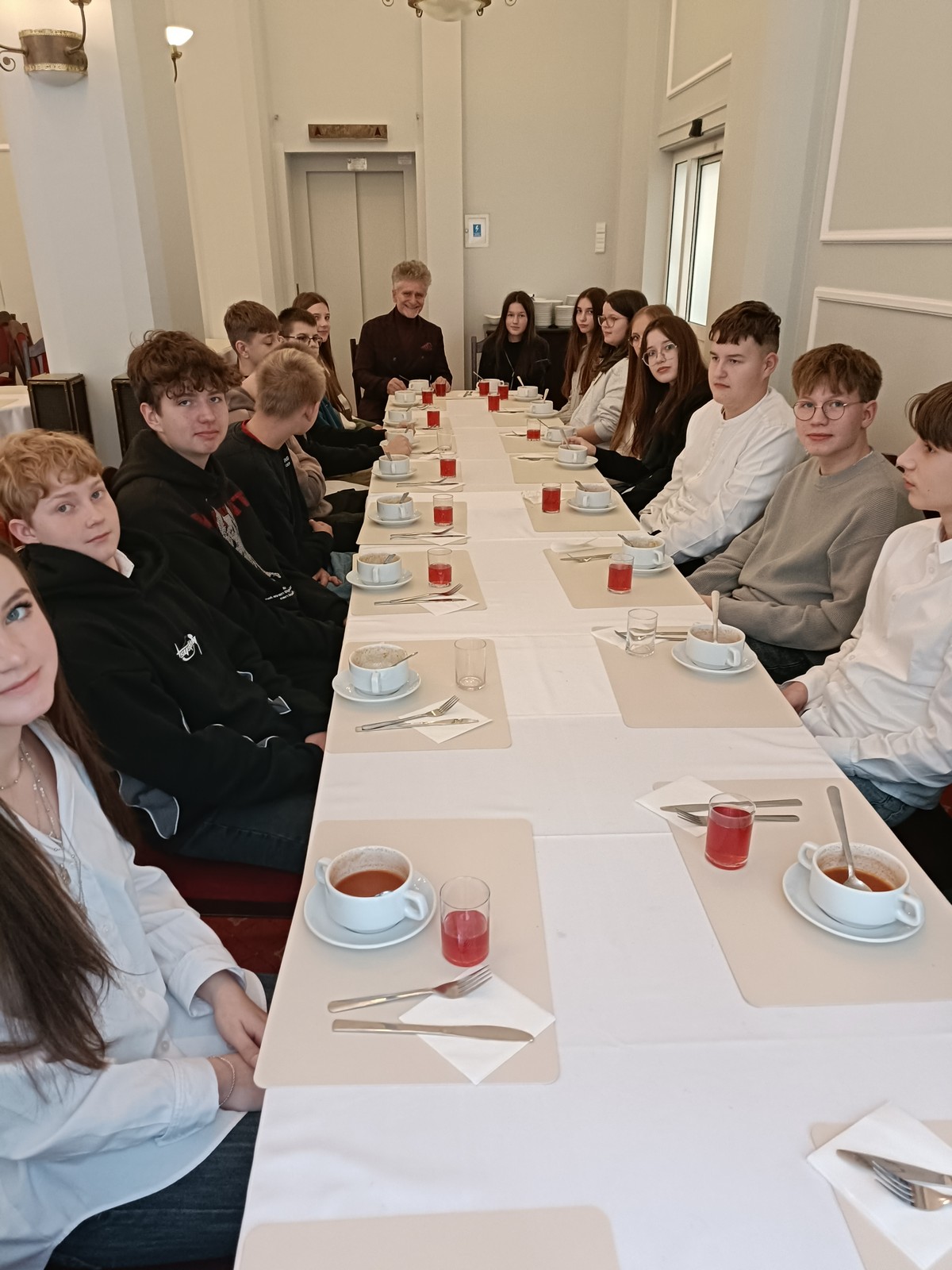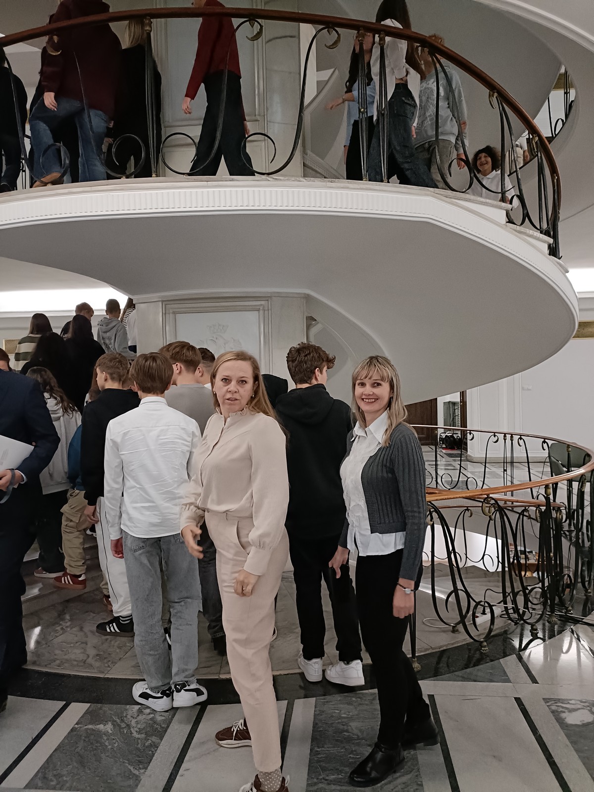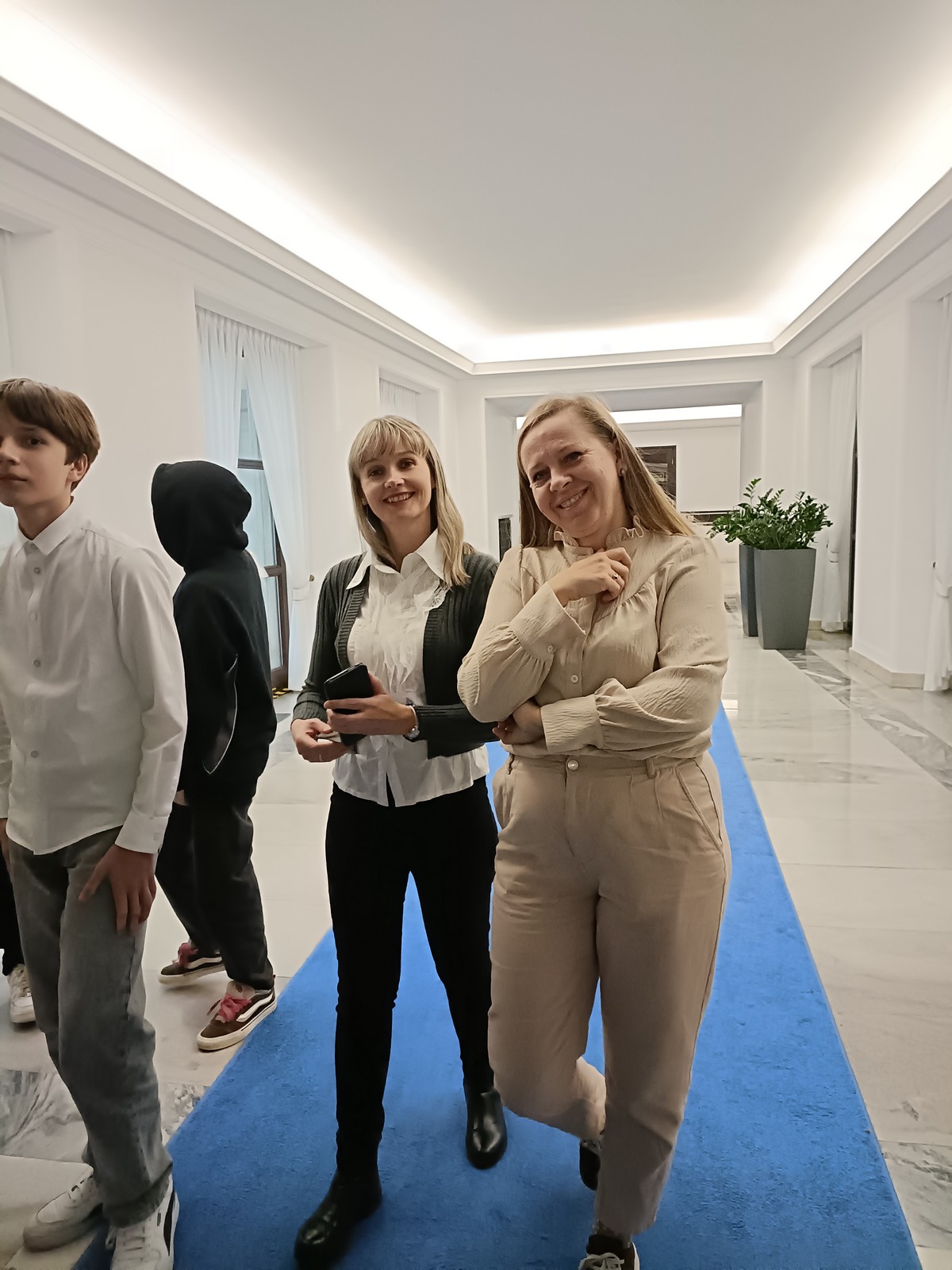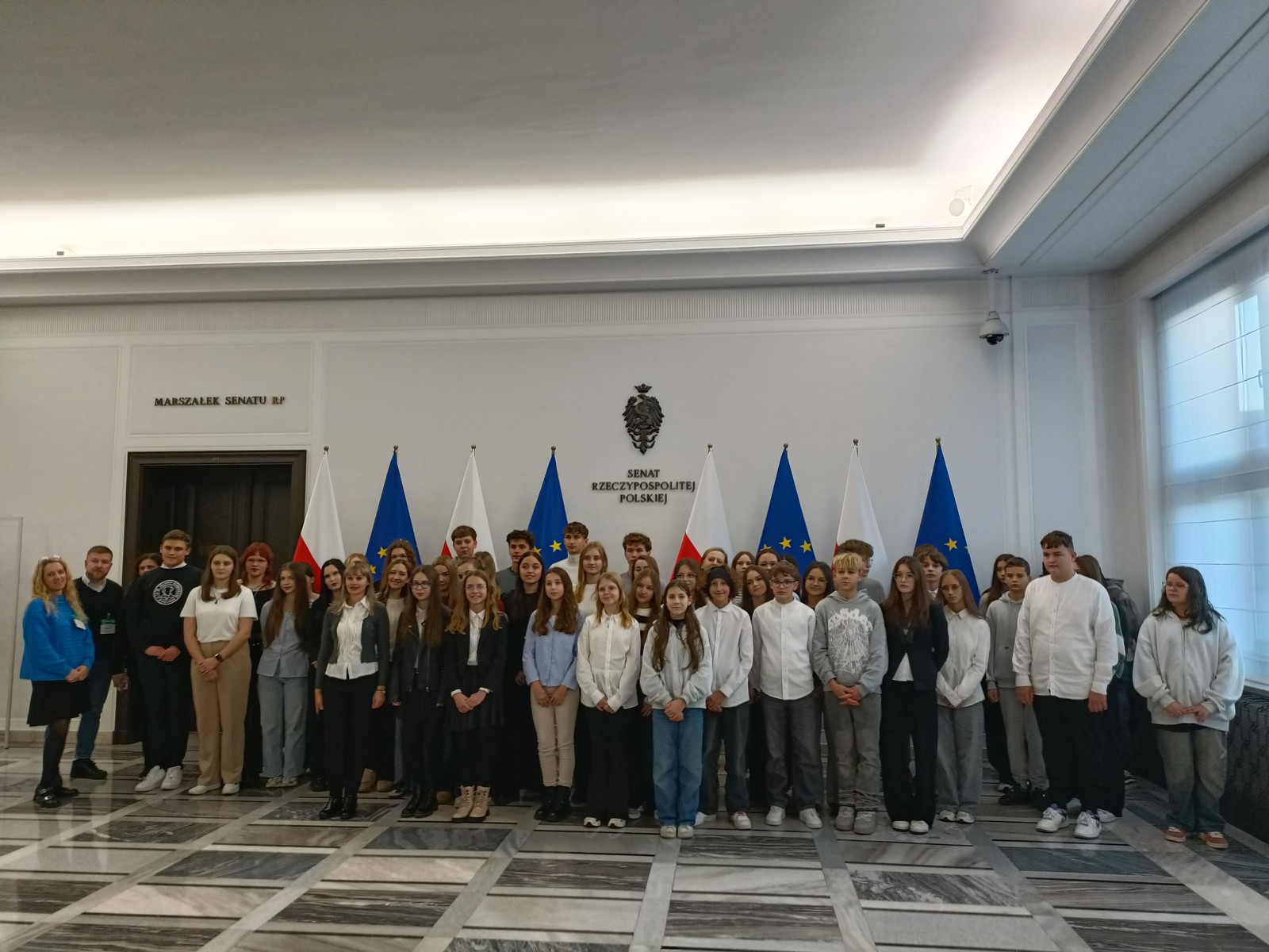 Druga część wycieczki obejmowała przestrzeń Parlamentu i tu już same liczne i skrupulatne kontrole wywołały spore emocje. Domowy obiad w starym Domu Poselskim w towarzystwie pana senatora był dla młodych ludzi okazją do „zwykłej” rozmowy ze znanym i szanowanym parlamentarzystą. I w końcu spacer po parlamencie, w którym nie tylko weszliśmy do sali posiedzeń Sejmu, którą znaliśmy z telewizyjnych wiadomości, ale także w sali senackiej wzięliśmy udział we fragmencie posiedzenia, na którym nie tylko wysłuchaliśmy części dyskusji nad ustawą o umowie ekstradycyjnej z Peru, ale zostaliśmy przez wicemarszałka Senatu powitani jako wolontariusze „Pól Nadziei”. To był duży zaszczyt, a wizyta w Parlamencie zostawiła w nas niezapomniane wrażenia.