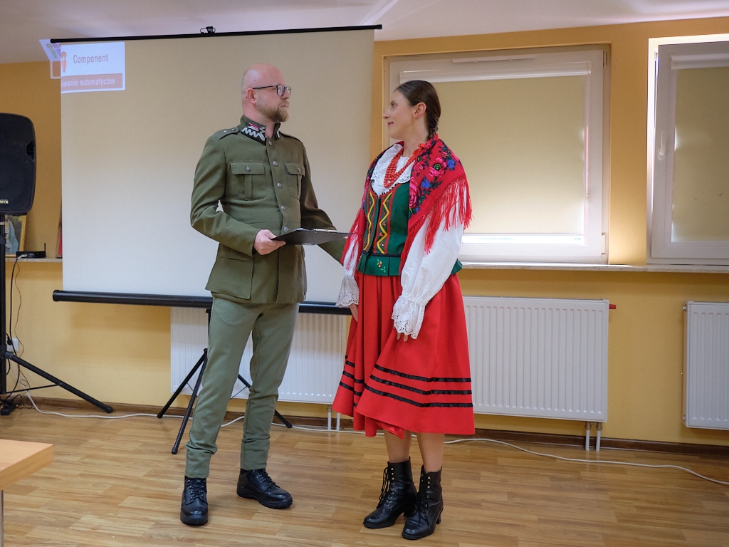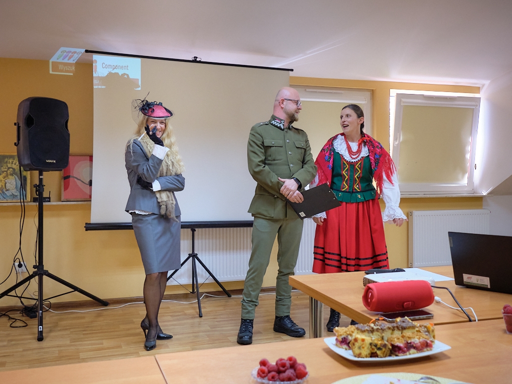 Dodatkowo, aby uhonorować mieszkańca naszej placówki, żołnierza i wielkiego patriotę, przygotowaliśmy krótkie wystąpienie „teatralne”, będące inscenizacją często przez niego cytowanego wiersza o losach polskiego żołnierza, jego wierności ojczyźnie i miłości do polskiej dziewczyny.