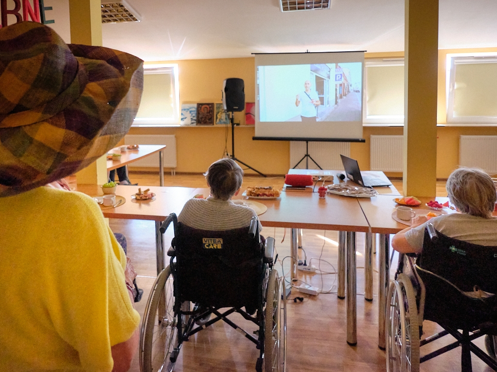 Pozazdrościliśmy tym, którzy spędzają czas na historycznych spacerach miejskich, więc nakręciliśmy krajoznawczy film specjalnie dla naszych pacjentów; z opowieściami inspirującego przewodnika świętokrzyskiego i ujęciami fachowca od… ujęć filmowych. I ten film na ostatnim „projektowym” spotkaniu zaprezentowaliśmy pacjentom. Aby uniknąć znużenia (projekcja trwała prawie godzinę) przygotowaliśmy pytania quizowe do filmu oraz wyjątkowe upominki, nawiązujące do tytułu realizowanego cyklu: lawendowo-cynamonowe ciasteczka o kształcie gołębia.
