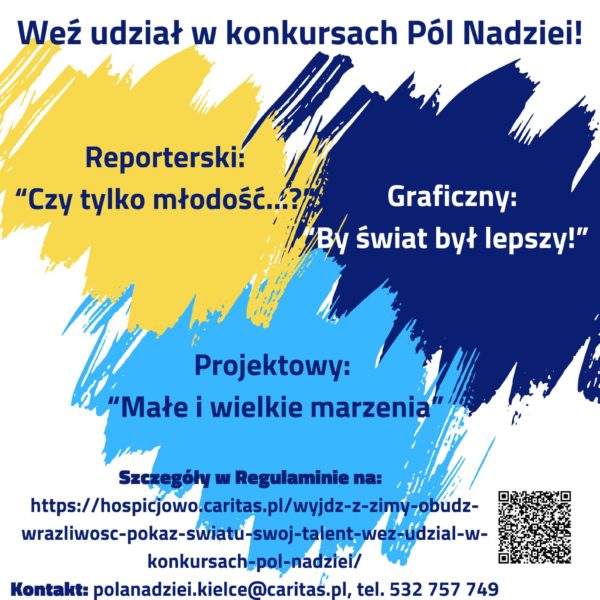 Pola Nadziei to także okazja do refleksji nad życiem, jego zmiennością, przemijaniem, radościami i bólem, nad braterstwem, miłosierdziem i współodczuwaniem. Trudno bez doświadczania tych spraw dojrzeć i stać się w pełni człowiekiem. Dlatego dzieciom i młodzieży co roku proponujemy konkursy, w których trzeba się zmierzyć...