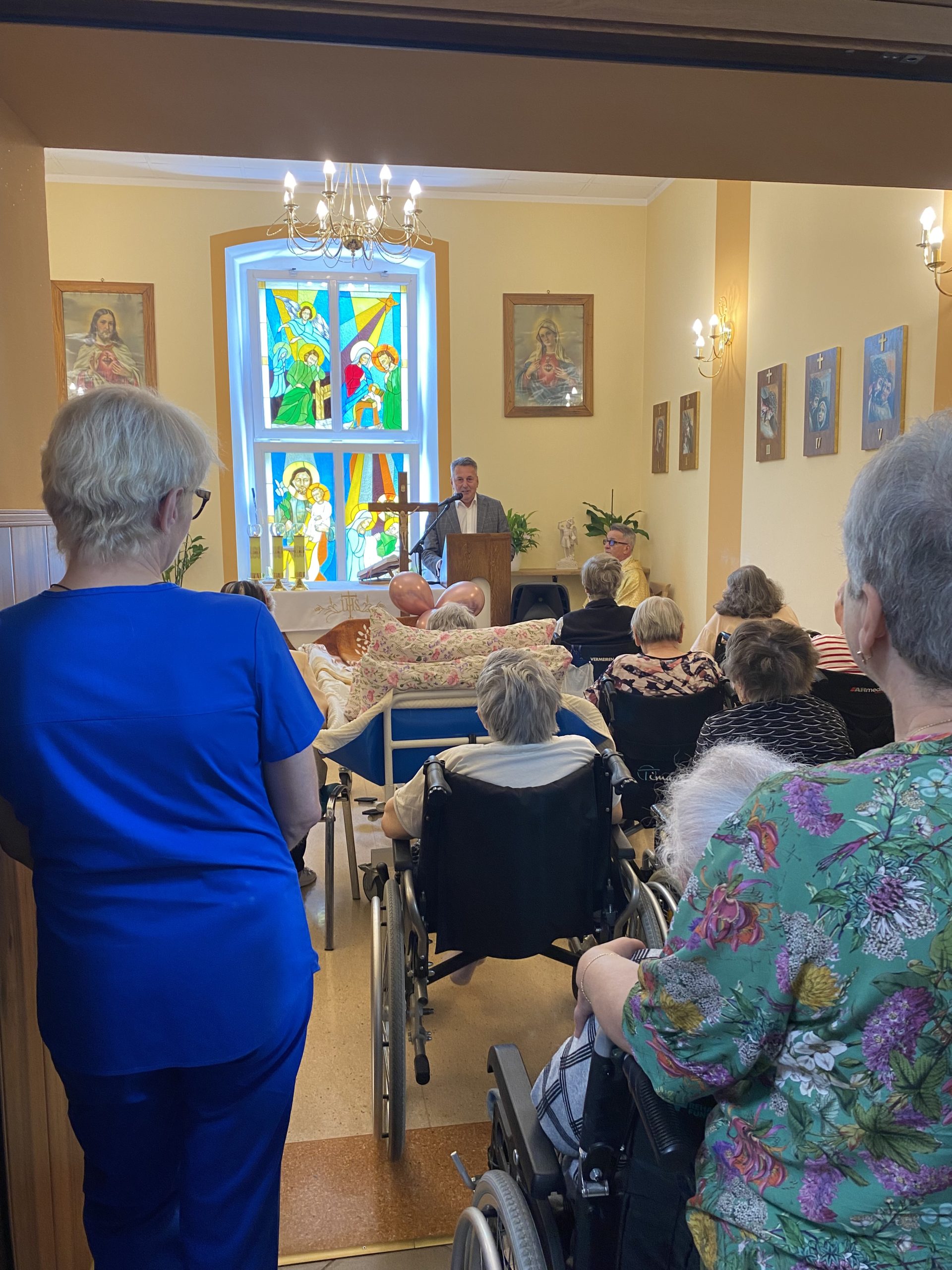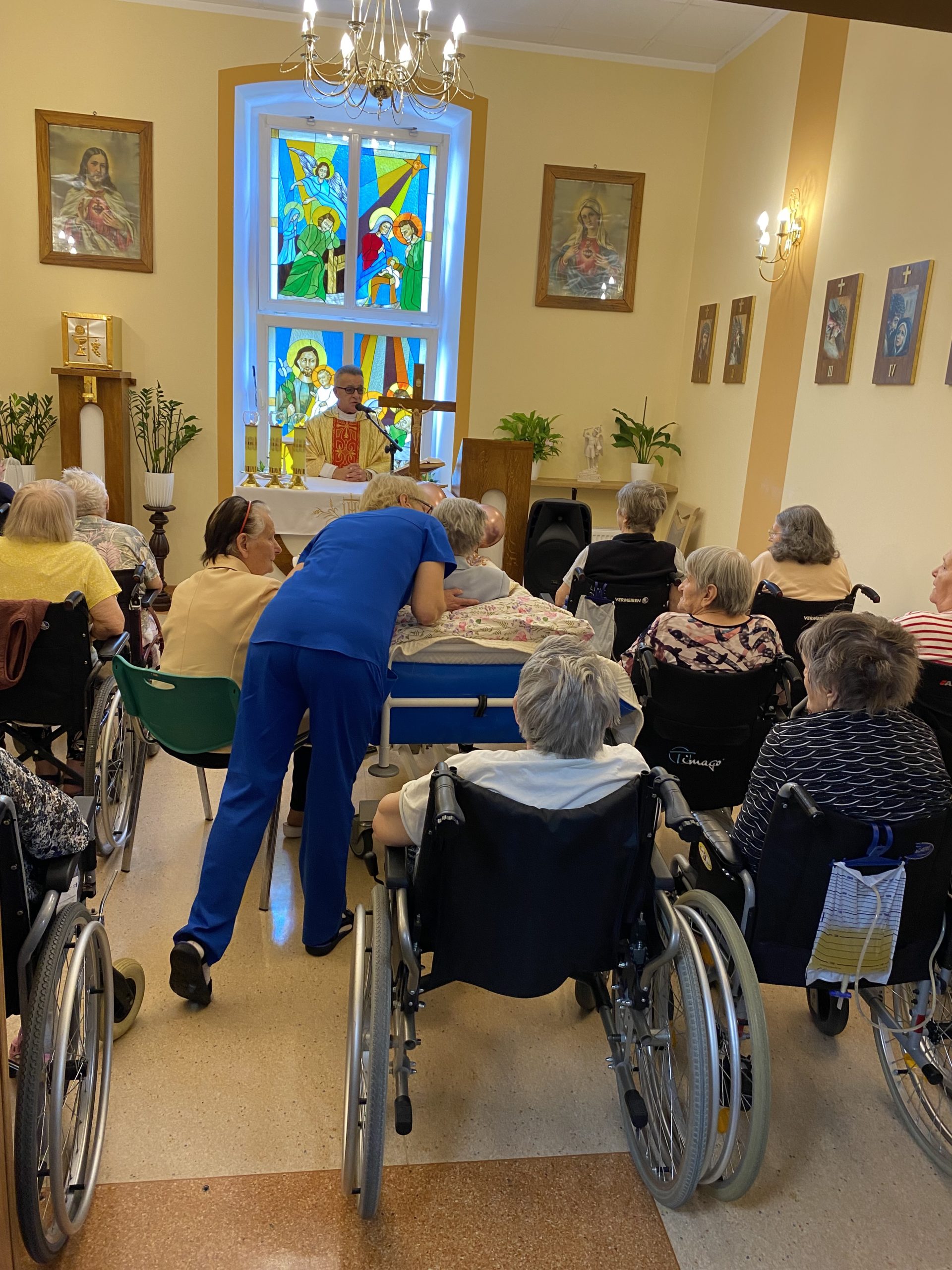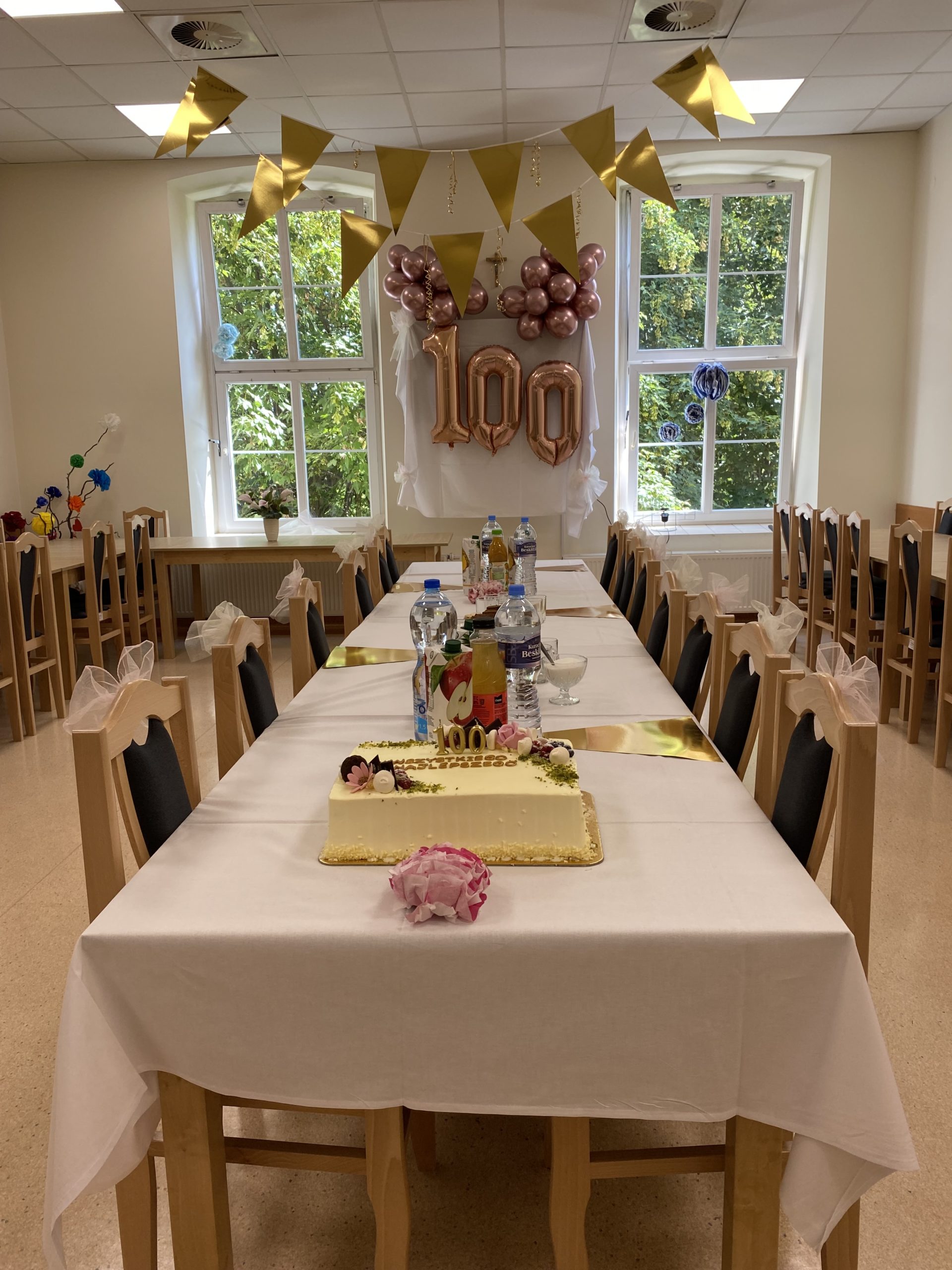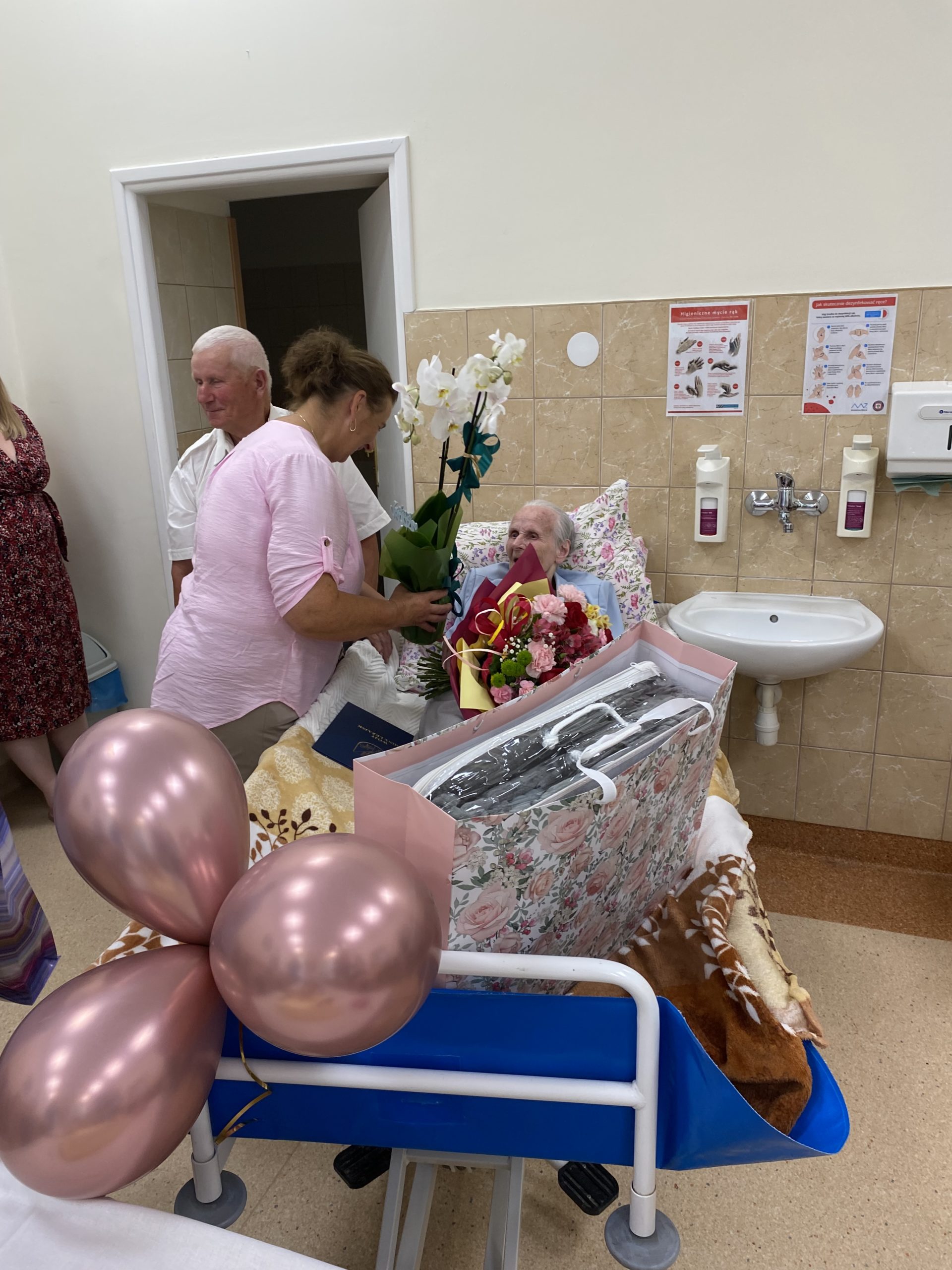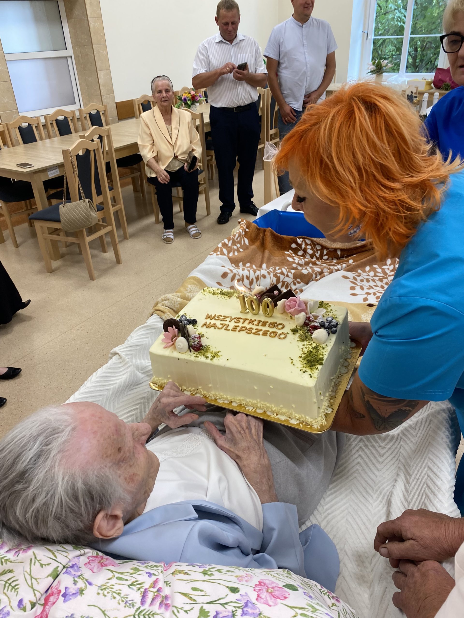 Dnia 01.08.2025, z wielką radością i wzruszeniem obchodziliśmy jubileusz 100. urodzin Pani Anieli. Uroczystość rozpoczęła się Mszą Świętą w intencji Jubilatki , po której odbyło się spotkanie przy wspólnym poczęstunku i urodzinowym torcie. W wydarzeniu wzięli udział pracownicy Centrum Medyczno-Charytatywnego, najbliżsi członkowie rodziny oraz przedstawiciele lokalnych władz – Wójt Gminy i Sołtys. To wyjątkowe święto było okazją do wyrażenia wdzięczności, szacunku i złożenia serdecznych życzeń kolejnych lat w zdrowiu i spokoju.